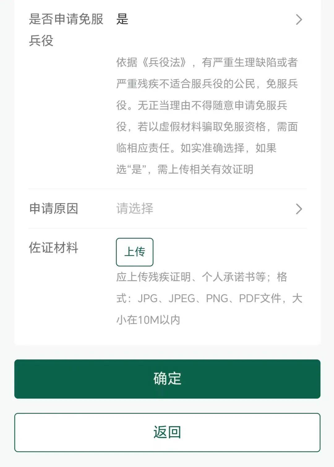 兵役立案的(1)初度,网实行网上立案可登录全国征兵。记的公民出具电子兵役立案凭证兵役陷坑会为完结初度兵役登。须要确凿有,质兵役立案凭证也能够出具纸,记凭证拥有平等效用电子和纸质兵役登。 记是一项强制性轨制端庄指示:兵役登,军与否无论参,应实行兵役立案适龄男性公民都。绝兵役立案的公民不实行、逃避或拒,功令职守将查办,、考公、出国等影响升学、就业! 实质——“是否申请免服兵役”结尾即是2026年新增的一项,康的填“否”即使身体健,服兵役要求即是适当,强制你去报名入伍当然兵役陷坑不会。服兵役愿望即使个体有,单里无间申请才智报名参军须要正在“职守兵搜集”菜: 役立案新原则新央求按照2026年兵,填写办法清理如下现将兵役立案的,参考模仿供多人,互转发指示也请多人相。 道理不行自立完制制案的(2)公民因身体等分表,支属代为立案能够委托其,府以及街道处事处该当核实闭系环境户籍地点地乡、民族乡、镇的群多政,完制制案并襄助。